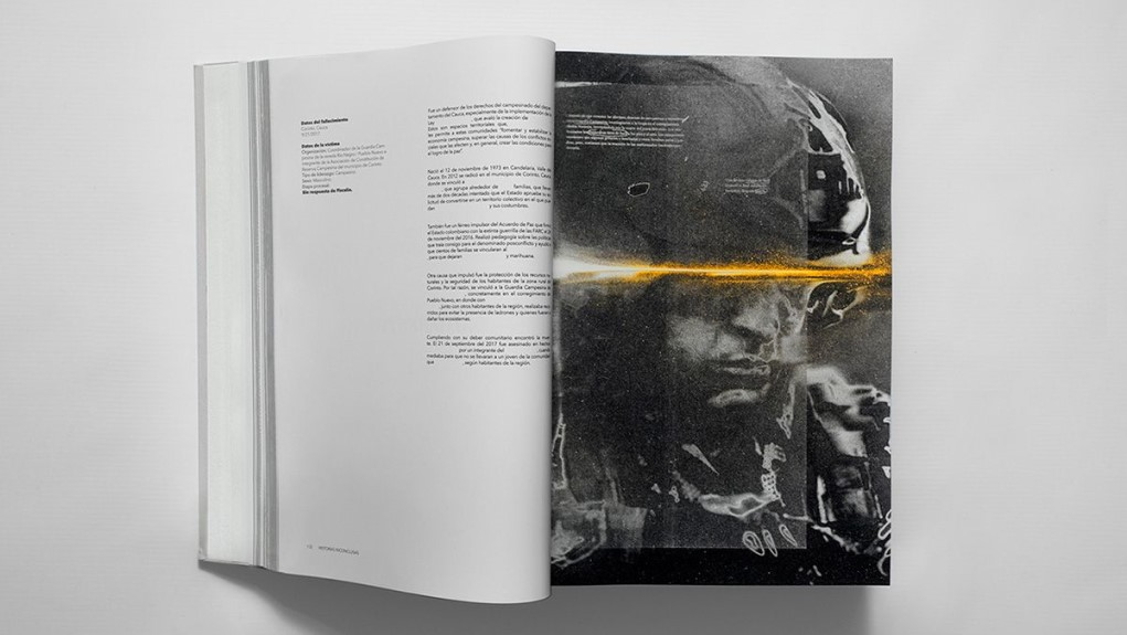 El libro presenta 20 historias de líderes asesinados en el país, a las que intencionalmente le fueron borradas frases, palabras y datos. ¿La razón? Se trata de crímenes en los que no se conoce por qué fueron asesinados los líderes y lideresas, para quién les resultaban incómodos o cómo ocurrieron los hechos.